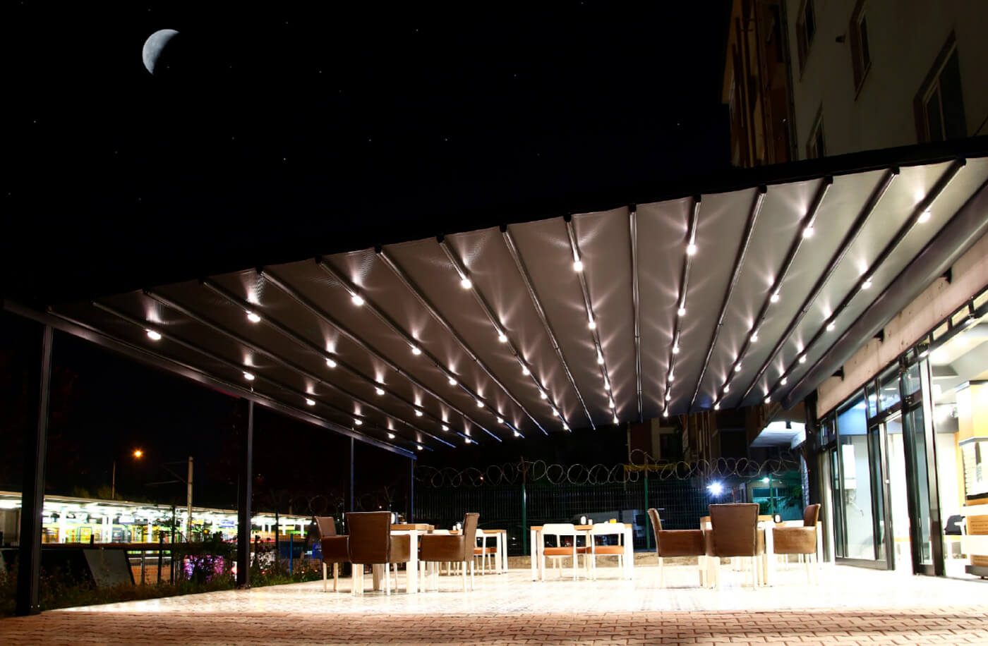 Nos pergolas rétractables se fondent parfaitement dans tous les styles architecturaux, que ce soit pour des villas modernes ou des bâtiments professionnels. Profitez d’une personnalisation complète, incluant :