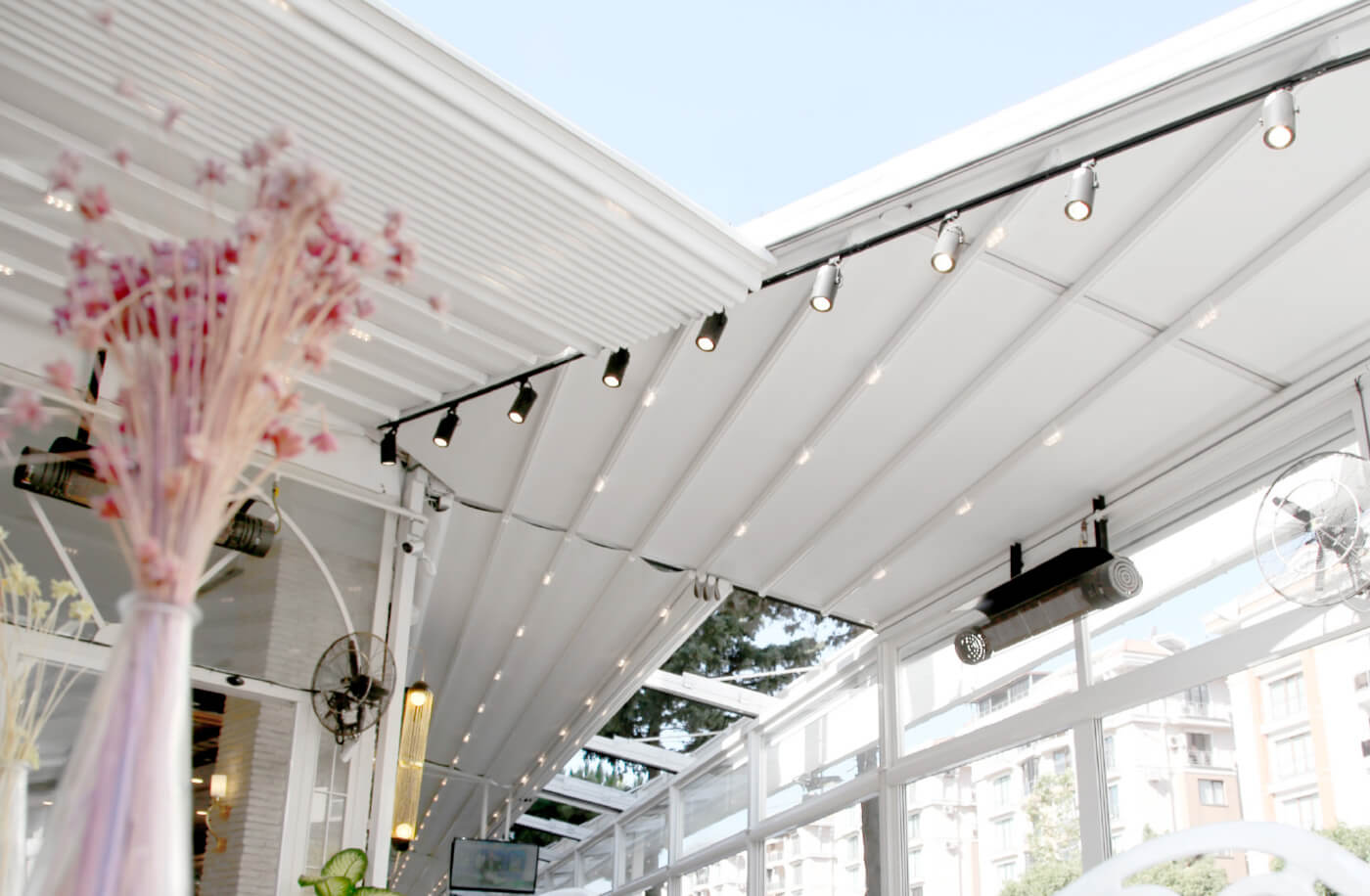 • Fermetures latérales en verre ou en store screen pour plus d’intimité